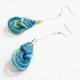 粉彩手工羊毛线 中国结 长耳环 (蓝/紫蓝/蓝绿)