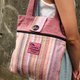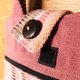 * 粉色系的外型,以多彩绵线编织的布条,搭配别出心裁的木质钮扣,作为包包开合的设计,让包包整体看来别致可爱。