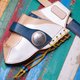 正面为摩根银币,非真币,真币须另外议价。固定皮绳采用鹿皮绳搭配日本手工琉璃珠。使用植物单宁酸鞣制的植鞣革,线材采用日本桥印麻线配合日本白蜡,染料选用植鞣皮革的ECO-FLO 系列环保染料,以上皆对人体无害。