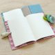 简单的空白笔记本,外层搭配专用书衣,可以将票券、名片收纳在书衣的夹层里。笔记本为A5通用尺寸,一次附上两本供补充替换,当内页使用完毕也可轻易找到替换的本子。简单、实用,风格别致。