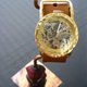 设计:此款手工表外壳设计侧边是以大树周围的感觉为依据而设计,玻璃周围则有一圈每支表都不相同的水波纹,表面以红黄铜搭配制作,背面则是品牌LOGO图案,树纹配上水波纹象征成长茁壮唷。