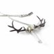 White bronze Stag horn pendant with clear raw quartz stone and oxidized antique color