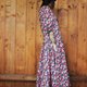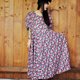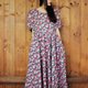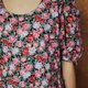 Description: F804(Vintage)黑色底红色粉红色花朵大波浪裙摆棉质短袖古着洋装