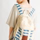 手织绵的海洋风条纹后背包陪你度过炙热的夏季,令人惊喜之处是皮革上压制的公平贸易原则。