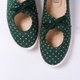 有着类似芭蕾舞鞋的开口绑带设计,但是比起芭蕾舞鞋方窄的楦头,春柿日有着圆润可爱的鞋楦,像两颗小柿子一样,比起直接穿鞋子,其实我们更建议搭配着袜子的穿着,让这双鞋的开口绑带造型更加显目。