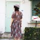 Description: (Vintage)黑色精致花卉布花短袖古着洋装