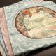 原本也是为了香槟省人(Champenois) 出版社印制家用月历所作,衬着一圈装饰性的环形背景,身着精美刺绣长袍的妇人,对着一本一直细细捧读的装饰设计书籍,或许正是印刷厂的样本,而陷入白日梦的绮想中。优美柔润的女子在艳丽小巧的花朵陪衬下翻阅着书籍,圆弧大器的背景支撑着主题,枝微末节中蕴藏着精细华美。