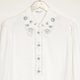 S4. 日本 气质精美淡雅灰蓝花刺绣白色衬衫