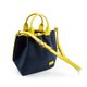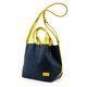 ◎桶形两用皮革帆布包,经上方拉绳, 可变换两种款式。