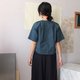 Crop blouse with a decidedly feminne touch, featuring smartly spaced soft inverted pleats all along the collar and 1/2 sleeves.Center back zip closure.