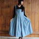 Description: F847(Vintage)蓝色小碎花棉质背心洋装(奥地利传统Dirndl)