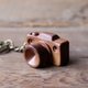 [森白] 的微型相机系列,为全手工木制品。 细腻的将相机的按钮、观景窗、镜头与机身处里的相当细致~ 全手工的坚持在于可依照每块木头不同的特性与纹理下去制作, 保留更多木头的质感与细节。 而一体成型的手工技巧,也让商品更坚固耐用! 可作吊饰、钥匙圈。 深约3厘米(含镜头),宽约4厘米,高约2.5厘米。 产地/制造方式 台湾/手作