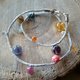 用上很幼细的银色尼龙线, 以八股线的方法夹以各种天然晶石手织而成的两圈设计手链