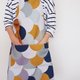 使用2013年布物设计春夏布花-曼波,双面的设计,一面为几何印花、一面为棉麻布,可随心情或调理食材的不同随意穿着,或是当成工作室的工作服都适合,