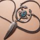 这款月牙造型的项链是美国印地安人手工制作的老品,上面镶有一颗非常漂亮的蜘蛛网状的绿松石 年代大约是50年代左右的作品,老东西有他的特别味道在是新品无法模拟的,喜欢有浓浓民族色彩 与老物件的朋友这次机会错过就再也没有了,可要好好把握住喔!链长可以直接套在脖子上。