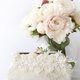 这新娘手拿口金包包是用100%真丝制成。我们使用绣花的薄纱和串珠的阿朗松骨花蕾丝 (Alençon lace) 营造这一个浪漫和女性化的包包。袋里有足够空间放置小型数码相机、小笔记本、手帕、信用卡或红包。内置暗袋可放置电话适合Samsung Galaxy Note 或iPhone 6 Plus。