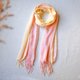 - 四季皆适用的纯棉流苏围巾,柔软不刺脖,轻巧好穿戴。职人亲手调配颜色、设计图纹,柔和色彩为妳的穿搭增添气质!