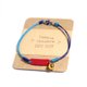 进口蚕丝蜡线、红色牛皮片(约5x22mm)、6mm真空镀金铜铃、扣头:小木珠/6mm铜铃(+5元)/金属扣头(+10元)