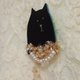 Black cat lady's brooch. I embroidered on a black leather-like cloth with gold thread. The part of the necklace uses freshwater pearls. It is a slightly larger size but light comfort. The decorative thread of a sparkling drop is a point. 【Product number】 10010_001 【Size】 W 4 cm × H 5.5 cm (+ Ornament Yarn About 8 cm) × D 1 cm (Brooch Pin Included) 【Material】 Freshwater Pearl · Acrylic Beads · Synthetic Leather · Embroidery Thread · Decoration Yarn · Brass Brooch Pin ★ This product will be produced after receiving your order. Usually it will be shipped within 5 to 10 business days except Saturdays and Sundays. Regarding shipping schedule during busy season we will inform you when ordering / inquiries. For handmade ※, there is a difference in one point such as the pattern position of the fabric, fabric. Please acknowledge that the image will be a sample item. ※ As there are limited materials and materials, sales may end without notice. Please acknowledge it beforehand. * Please understand that cancellation after the start of production and returned goods due to the customer's convenience can not be accepted. ◇ Colors may vary depending on the terminal you use. <About handling> ◇ Please note that embroidery parts are weak against friction and rubbing. ◇ Please read carefully <Notice of handling> of the same sending at the time of use.
