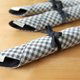 《包裹方法》棱形状餐具套,先由上角往下折(缺一角),再由左至右折一角,由左边往右边卷起,最后系起绑带即完成。