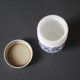 小巧的蓝白色牛奶玻璃罐,有小花的装饰以及金属的盖子。盖子上印的德文是开/关的意思。罐子底下有 "13" 这个数字但是 white on white 好难照出来给你看。牛奶玻璃是一种超级经典的 vintage 材质,有如名称,质感是厚玻璃,色泽却跟牛奶一样温润~