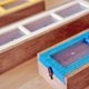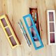 雨玻璃铅笔盒,新色上市:棂黄色。原榉色。窗蓝色(由左至右)