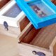 使用拉门设计的开法,在盒子尾端加装挡板,使用上更方便,可以带出门不怕盒盖滑出。