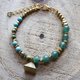 品名:自然风系列NO.127东菱玉土耳其石黄铜不对称手链