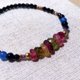 碧玺,被视为是灵性之石。因着她的多彩,能激发人的灵感与创意,让心更为宽广辽阔,同时也能获取心境上的平静。佐上带有半透明清透感的蓝玛瑙,她给人消解紧张与压力、平静舒缓的力量,帮助妳平复负面的情绪与能量,为妳带来爱与勇气。以及闪耀着银彩光芒的蓝砂金,她能强化意志力,为妳带来勇气与自信、活力与冲劲,更能强化注意力,让脑袋思绪更清晰。再搭配上黑的很浓郁的黑玛瑙,她给予人们稳定的力量,代谢掉负面的能量,让人得以沉淀与舒缓。最后衬着散发炫彩的日本珠与捷克珠,让多彩清透的碧玺更彰显春天生命的气息,让人更有力量。