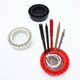 一字排开的设计,让每只笔都有自己的专属座位。细致的柔软锥形孔适合放置各种尺寸的笔,不但可轻松挑选笔具,视觉整齐且兼具美观。乐笔圈的中间设有小置物区,可将无家可归的小物收纳起来,维护环境整洁。