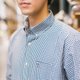 男士衬衫:窄版、顶扣 - 海军蓝白格纹