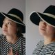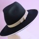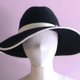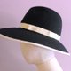 Light weight body Navy wide brim fedora hat with cream color trim.