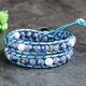 【材质】意大利斑蓝石、白松石、进口金属色真皮牛皮绳、编织线、合金组件、进口手链扣