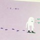 雪怪在一大片紫色雪地里一边走着一边留下它的大脚印