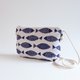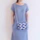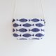 品名:手工车缝制湛蓝色拓印小鱼随身小斜肩背布包