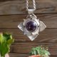 这是一条非常非常深邃的紫色小花项链,有着很神祕的气质。 坠子尺寸25mm*25mm,深紫水晶镶在手工切割的925银花朵上,花瓣使用融银技法,有着每一片都不一样,独一无二的纹路。硫化处理后局部抛光。 *此件已售出* 喜欢此款的朋友欢迎讯息讨论挑选宝石订制喔! *价钱可能会依宝石而调整* 商品材质 -925银,紫水晶