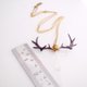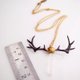 Brass Stag horn pendant with clear raw quartz stone and oxidized antique color