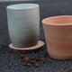 用心的以手揉、拉坯、素烧、釉烧、打磨,以及用铅字将专属的字句刻上。