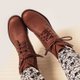 Jan一直很喜爱中性的靴款,带点男孩般的率性!皮料运用厚质的苯染牛皮,制造出不均匀的随性效果,采用登山鞋底耐走防滑,帅气经典!将领口翻开,则摇身一变成不一样的鞋款,多点女孩儿的俏皮味道!此靴款隽永不败,穿个十年也不退流行!