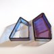 蓝色款正面以黄铜线分割,背面镂空