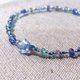 透沁蓝紫的丹泉石象征着智慧,能够强化洞悉力与直觉,犹如像是开阔的蓝天般,为自己心中的决定,找出适切的答案。佐上淡蓝如海的磷灰石,她给予我们想海洋一样的包容力,象征生命的诞生,让人们有再造的力量,她更能排解身心的紧张感,为人们带来幸运的力量。再搭配上透射蓝色光晕的拉长石,她能够舒身心的缓疲累与不适、强化清晰思路与洞悉力。最后再趣味地佐上一颗炫蓝彩小星星捷克珠,彷佛是在净空中闪烁着蓝晕光芒,so cute!