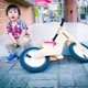 一个爱骑脚踏车的两岁小孩与辅助轮及脚踏板的牵扯不清