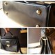 尺寸:约27X22cm (袋底厚约11cm) 合成皮材质。 包包状态超好,几乎像全新的。 扣子的设计很特别,金色扣子扳开就可开启。 包包双面都可当正面,各有两个夹层(见图五) 底部铆钉,还有小提把,有点医生包的味道。 老物可遇不可求、只有一件。 运费:70