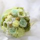 本款以浅绿/浅黄/白色等,玫瑰.绣球.金仗球搭配不凋花