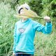 因为太冷了,只能在旁边摸摸草、摸摸水、摸摸帽子!