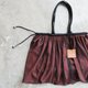 包包内里是比较厚的斜纹布料,外面是雪纺纱料,内外logo则为牛皮皮革喔!