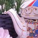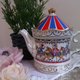 花茶壶盖以可爱的红蓝白条纹搭配.状似旋转木马的屋顶