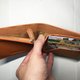 将高质感的皮料压上俐落的装饰直纹,透过几何得拼接
