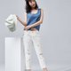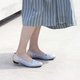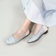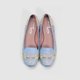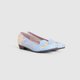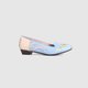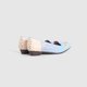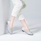 淡色调的湖水蓝与裸色拼接设计加上个性铆钉装饰