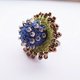 以手钩蕾丝及串珠蕾丝技法所制做的富手感原创的戒指,珠材系采日本进口玻璃小珠,深蓝色搭配春天绿,钩织出其活泼独特的样貌。